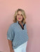 The Terry Top combines a sophisticated stripe pattern with a high neck and elasticated sleeve bands for a tailored fit. Its dolman sleeves and multicolor ribbed split neck add subtle accents, enhancing its modern silhouette. Crafted from lightweight woven fabric, this unlined, non-sheer top offers breathable comfort and refined style suitable for versatile layering or standalone wear.