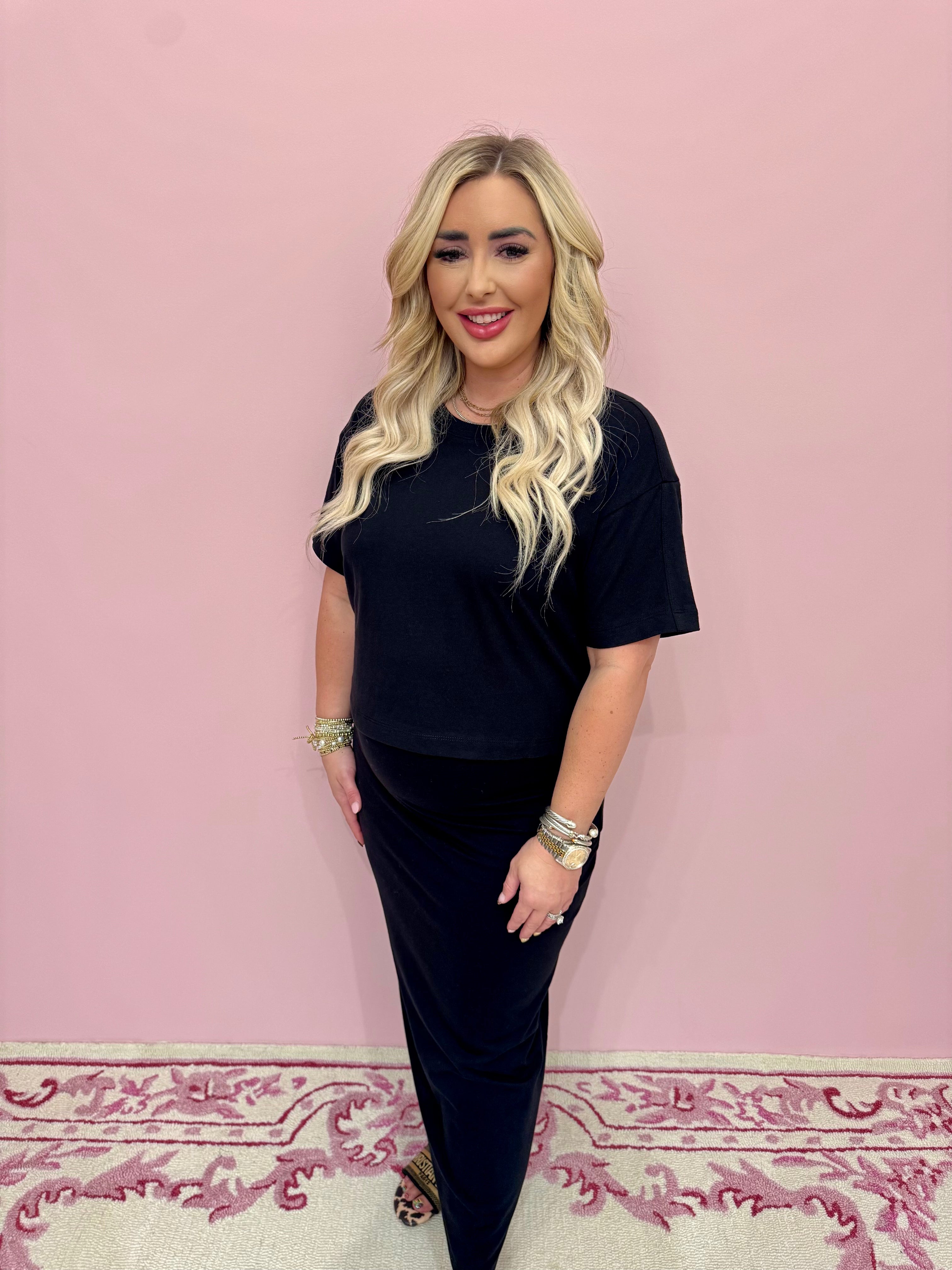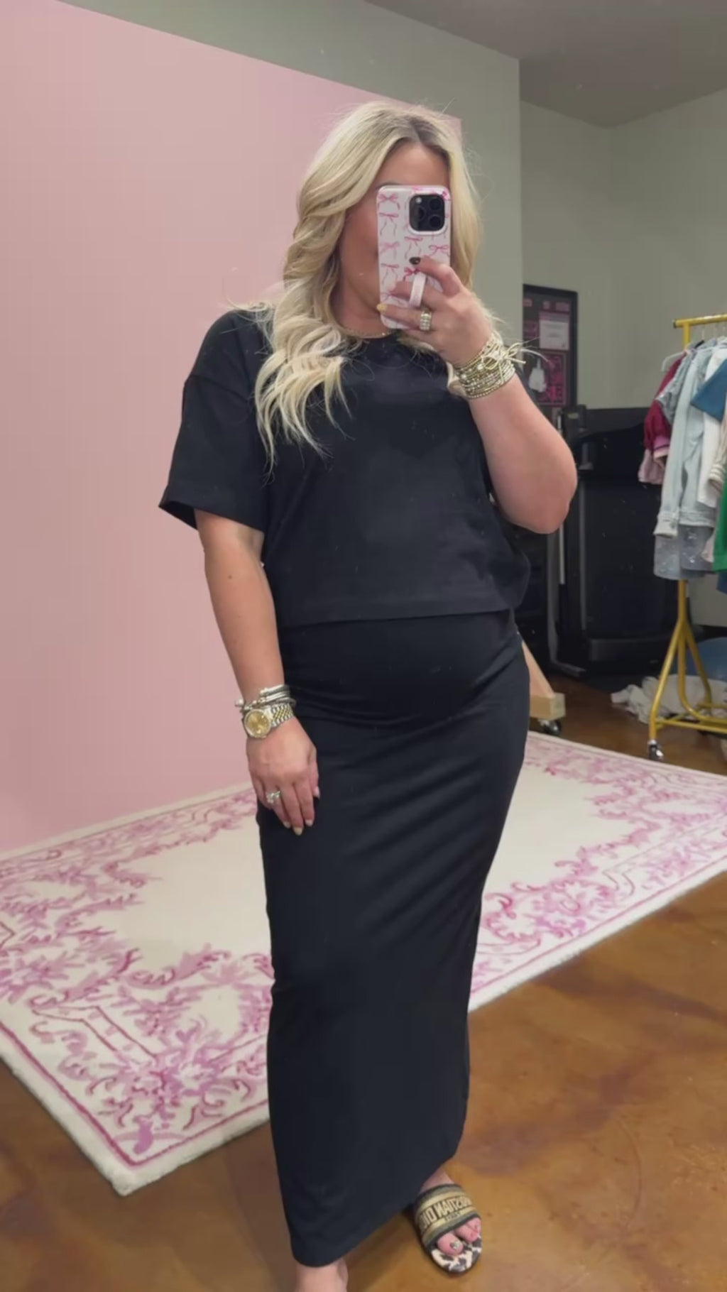 This true black midi skirt features a classic pencil fit crafted from breathable cotton, offering both comfort and a sleek silhouette. Its versatile design pairs effortlessly with various tops, sold separately, making it an essential piece for a refined wardrobe. Ideal for professional or casual settings, this skirt combines timeless style with practical wearability.