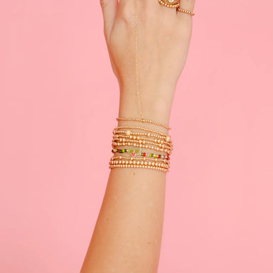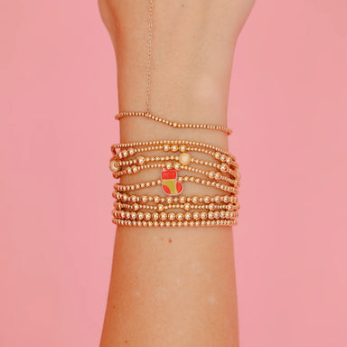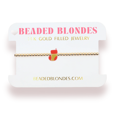 Part of the Beaded Blondes Holiday Collection. Our Stocking Bracelet is on gold making it perfect to add to your stack for the holidays. 3MM gold...