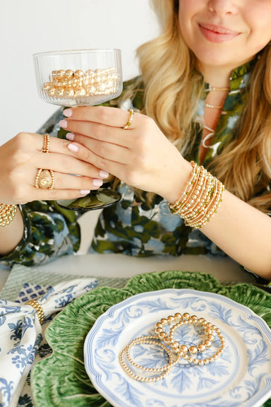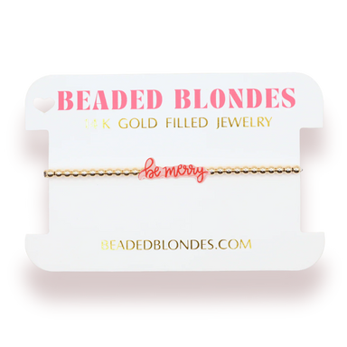 Part of the Beaded Blondes Holiday Collection. Our Be Merry Bracelet is on gold making it perfect to add to your stack for the holidays. 3MM gold...