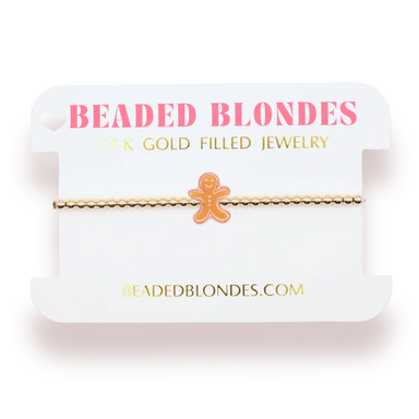 Part of the Beaded Blondes Holiday Collection. Our Gingerbread Man Holiday Bracelet is on gold making it perfect to add to your stack for the holid...