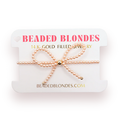 Tie on a touch of whimsy with this charming Pink Pearl Bow Bracelet from Beaded Blondes. Delicate pearl beads form an adorable bow design that's pe...