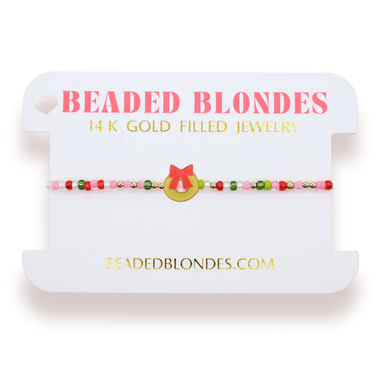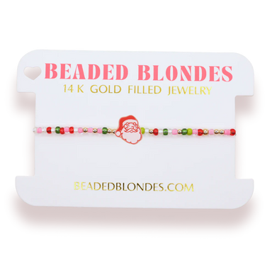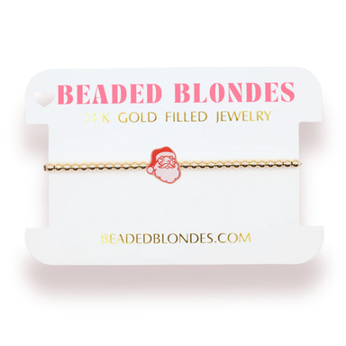 Part of the Beaded Blondes Holiday Collection. Our Santa Bracelet is on gold making it perfect to add to your stack for the holidays. 3MM gold be...