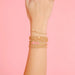 Part of the Beaded Blondes Holiday Collection. Our Be Merry Bracelet is on gold making it perfect to add to your stack for the holidays.