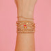 Part of the Beaded Blondes Holiday Collection. Our Stocking Bracelet is on gold making it perfect to add to your stack for the holidays.