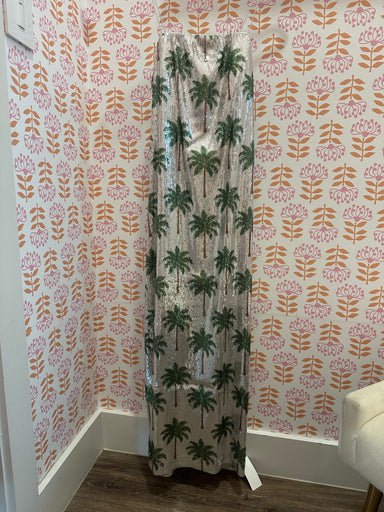 Shimmer and shine in this show-stopping Lizzy Midi Dress, where tropical vibes meet disco glamour. Adorned with eye-catching palm sequins that catc...