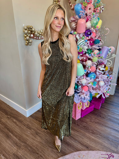 Shine like royalty in this show-stopping Black & Gold Full Rhinestone Active Midi Dress from Queen Of Sparkles. Every inch glimmers with dazzli...