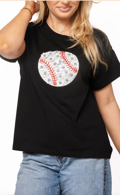 # Black Flower Baseball Tee-QOS Strike the perfect balance between sporty and stylish with this charming baseball tee. The classic black base pairs...