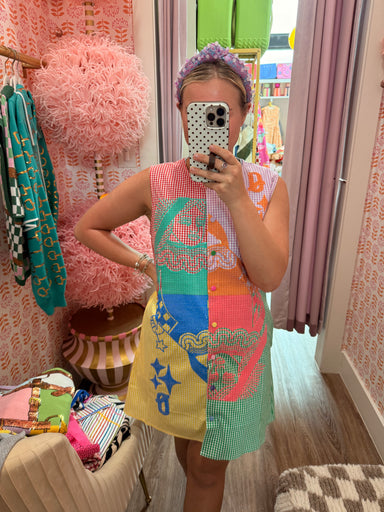 Elevate your wardrobe with this charming colorblock gingham button-up dress from Queen Of Sparkles. Crafted from soft cotton, this queen-sized piec...