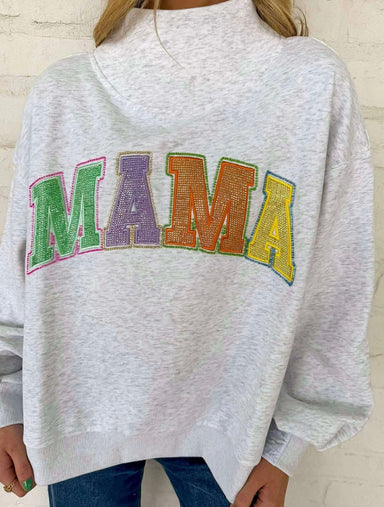 The Grey Multi “Mama” Mock Neck Sweatshirt offers a stylish and comfortable layering option. Constructed from soft materials, it provides warmth an...