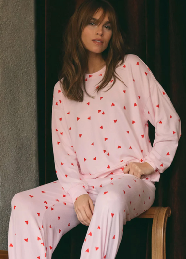 Wrap yourself in cozy charm with the Mira Heart Long Sleeve Top in Pink Marshmallow. This delightful piece features an adorable heart design that b...