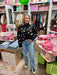 Shine bright like the royalty you are in this show-stopping black cotton button-up! Adorned with a dazzling multi-rhinestone heart design, this top transforms any outfit into a sparkly statement. The classic button-up silhouette keeps things wearable while the glittering embellishment screams confidence and fun. Perfect for date nights, girls' nights out, or whenever you want to feel like the queen of the room. Comfort meets glamour in one fabulous piece.