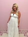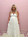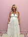 The Harmony Maxi Dress features a flowing white silhouette elegantly accented by a series of black bows cascading down one side. This design detail adds a refined contrast and visual interest, making it a sophisticated choice for formal occasions or stylish daytime events. Crafted for both comfort and style, the dress offers a graceful fit that enhances your natural poise.