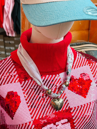 The Scarf Necklace Single Heart combines the versatility of a scarf with the elegance of jewelry, offering a unique accessory option. This design a...