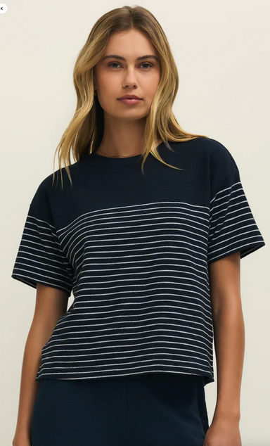 The Foundation Stripe Tee in Sandalwood by Z Supply is a stylish, comfortable t-shirt featuring a classic stripe pattern and a relaxed fit, perfect...