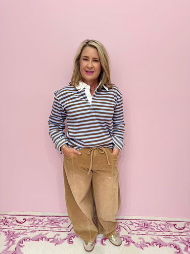 Effortless comfort meets laid-back style with the Dawn Smocked Rib Pant in Iced Coffee. The smocked waistband gives you that perfect "just right" f...