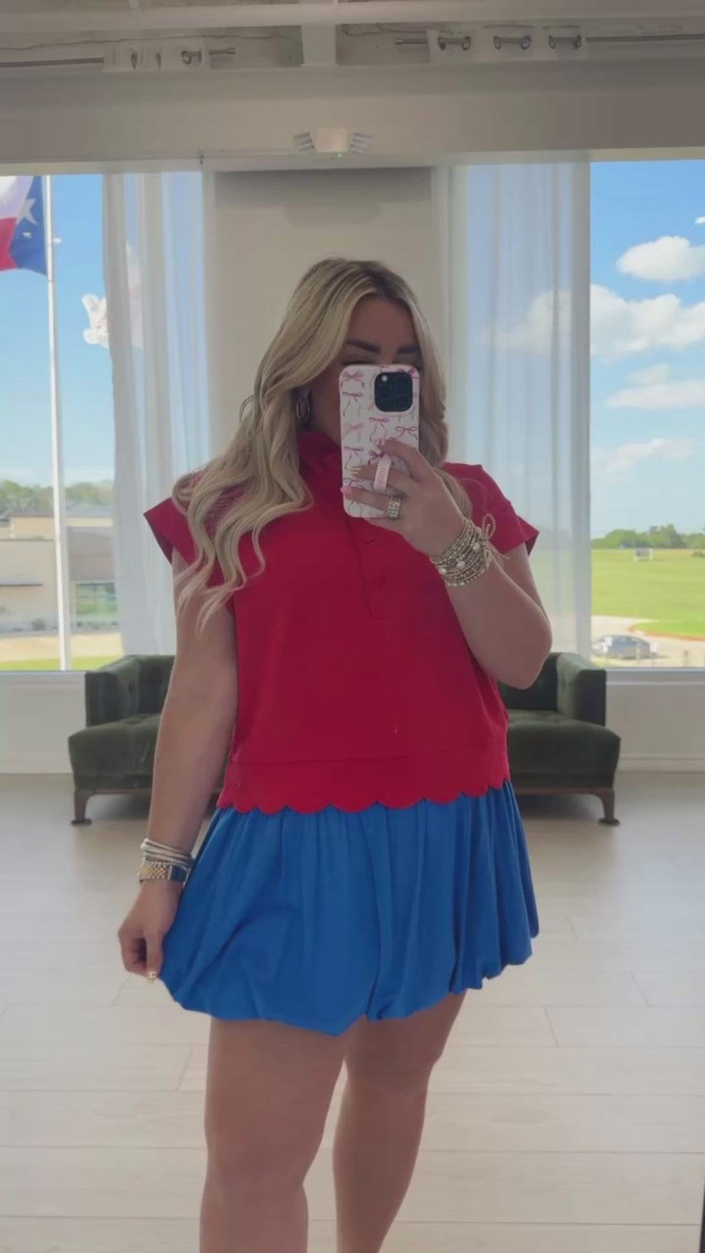 Enhance your wardrobe with our On My Mind Skirt. This mini skirt features a playful blue bubble hem, adding a touch of whimsy to any outfit. Made from high-quality fabric, it brings comfort and style together seamlessly. Elevate your look with this versatile piece.