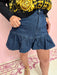 Add a flirty twist to your wardrobe with the Smooch Ruffle Skirt in denim. This playful skirt features charming ruffles that dance with every step, made from comfortable denim that’s perfect for all-day fun. Whether you’re out with friends or simply feeling fabulous, this skirt brings a spirited vibe to any outfit.