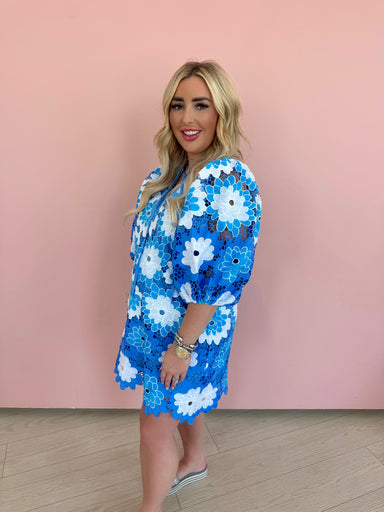 Elevate your wardrobe with the Deb Flower Power Mini Dress, featuring a striking bright blue and pink floral pattern. This carefully crafted mini s...