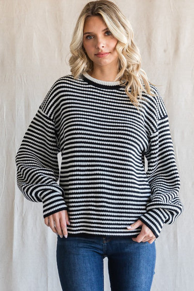 The Carlyle Everyday Crewneck by Daze is a long-sleeve striped shirt available in two stylish options: brown stripe and black stripe, offering a co...
