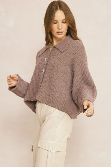 The Alli Top is a sophisticated brown cropped knitted piece designed for a refined, modern wardrobe. Its textured knit offers both comfort and styl...