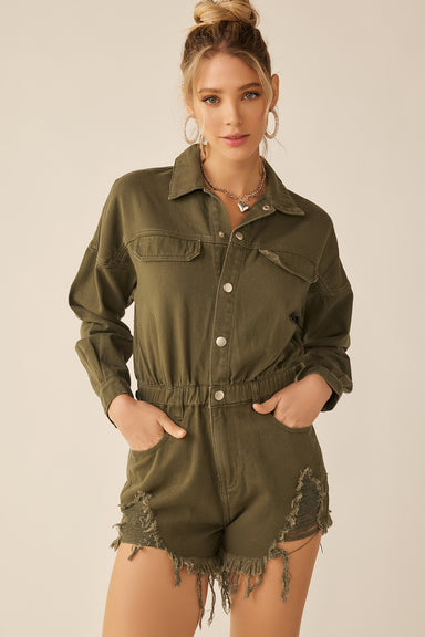 Experience ultimate comfort and style with the Kinley Romper. This loose fit romper is made from French terry material and features a big collar an...
