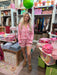 Upgrade your pajama game with our Hearts PJ Set. Made with a luxurious satin material, this set features charming heart prints, delicate scallop details, and lace trim for a touch of elegance. The tied cuffs add a cute and playful touch to the long sleeve shirt and shorts combination. Sleep in style and comfort tonight.