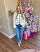 White Multi Cosmo & Martini Button Up Cardigan With Rainbow Trim - Queen Of Sparkles