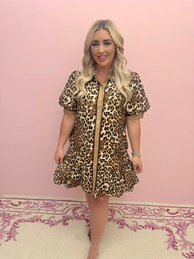Unleash your wild side with the Tate Leopard Denim Puff Sleeve Dress—where denim meets untamed style. This playful piece features a striking leopar...