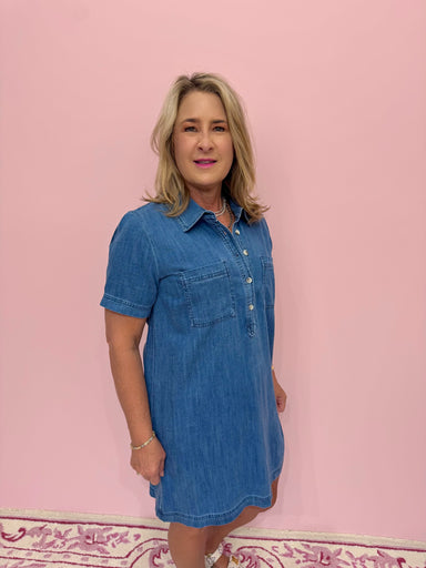 Step out in style with the Spencer Mini Shirt Dress, your new go-to for effortless charm. This playful piece blends classic shirt details with a mi...