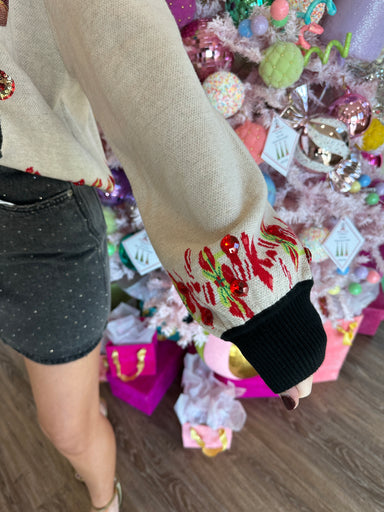 Step into festive fun with the Black Trim Collar Nutcracker & Candy Cane Button Up Cardiganโperfect for the Queen of Sparkles! This playful car...