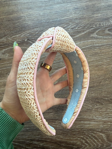 This woven headband combines tan and pink hues in a carefully crafted design, offering both style and comfort. Its durable weave ensures a secure f...