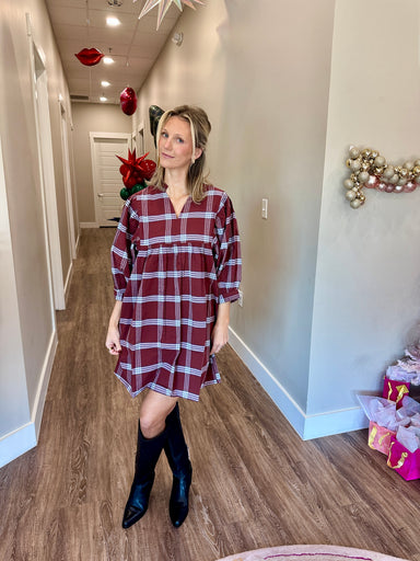 The Shipley Dress in Brown is your new go-to for effortless style. This versatile piece transitions seamlessly from day to night, whether you're ru...