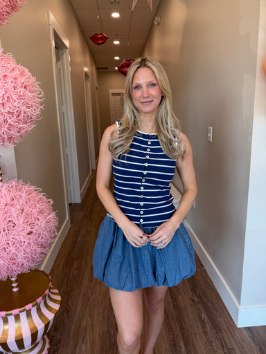 The Cooper Mini Skirt is expertly crafted from high-quality denim, making it a durable and versatile addition to any wardrobe. Its mini bubble desi...