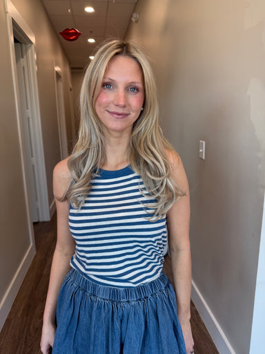 Dive into summer style with this vibrant striped tank top in Calypso Blue and Indigo. The classic horizontal stripes bring a fun, nautical-inspired...