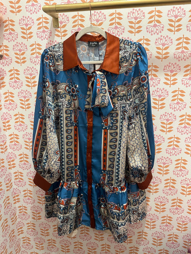 Embrace winter glamour with the Rockefeller Mini Dress in Subzero Indigo by Show Me Your Mumu. This playful piece combines a rich, cool-toned indig...