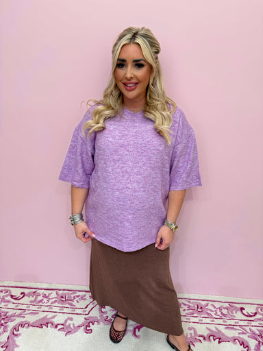 The Margot Sweater Tee in Lilac Spell Melange offers a cozy yet stylish option perfect for transitional weather, blending the comfort of a sweater ...