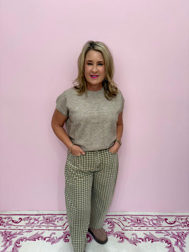 View full detailsThe Checkmate Sweater Top in oatmeal is a stylish and cozy piece featuring a classic checkered pattern in soft, neutral tones. Made from warm, co...
