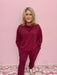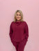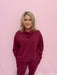 The Betsy Sweat New Maroon by Varley is a soft, lightweight, stretch long-sleeve pullover featuring a relaxed fit with a tie detail at the bottom, offering a comfortable and stylish piece ideal for casual and athleisure wear in a rich maroon color.