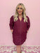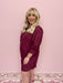 The Diana Stitched Dress in burgundy features a sophisticated V-neckline and 3/4 sleeves, making it perfect for both day and evening wear. Its zip-up front offers easy wear and a tailored fit, complemented by delicate white stitching detailing that adds a touch of elegance. This dress combines classic style with subtle decorative accents, making it a versatile addition to any wardrobe.