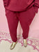 The Slim Cuff Pant in New Maroon by Varley are soft, stretchy, lightweight activewear pants with a sleek fit and cuffed ankles, perfect for both workout and casual wear in a rich maroon shade.