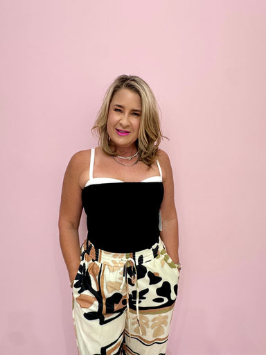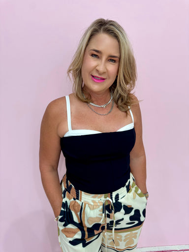 The Tiff Top is a sleek black and white tank designed for versatile layering and effortless style. Crafted to provide a comfortable fit, it pairs s...