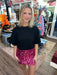 Turn heads with the All Night Skort in Rich Magenta Sequins, designed to keep you dancing till dawn. This playful piece combines the freedom of a skirt with the comfort of shorts, sparkling brilliantly with every move. Perfect for those who want to shine and stay effortlessly chic all night long.
