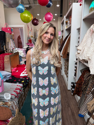 The White Butterfly Mesh Midi Coverup- QOS features a delicate mesh construction that offers breathability and comfort. Its midi length provides ap...