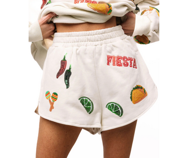 Elevate your celebration style with the Beige Cinco Icon Short from Queen Of Sparkles. This eye-catching piece features iconic sparkle detailing th...