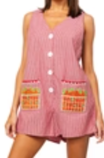 Raise the bar in this vibrant red tie romper featuring playful margarita recipe icons and sparkling embellishments. Perfect for cocktail lovers and...
