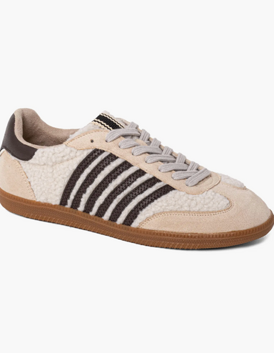 The Stevie Sneaker features sophisticated neutral stripes in a contemporary silhouette, embodying Shu Shop's commitment to trend-forward footwear. ...