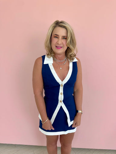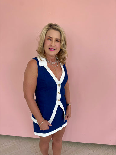 Embrace winter glamour with the Rockefeller Mini Dress in Subzero Indigo by Show Me Your Mumu. This playful piece combines a rich, cool-toned indig...
