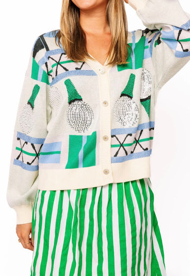 View full detailsThe White Multi Argyle Golf Bag Button Up Cardigan- QOS combines style and functionality, featuring a versatile argyle pattern ideal for both on an...