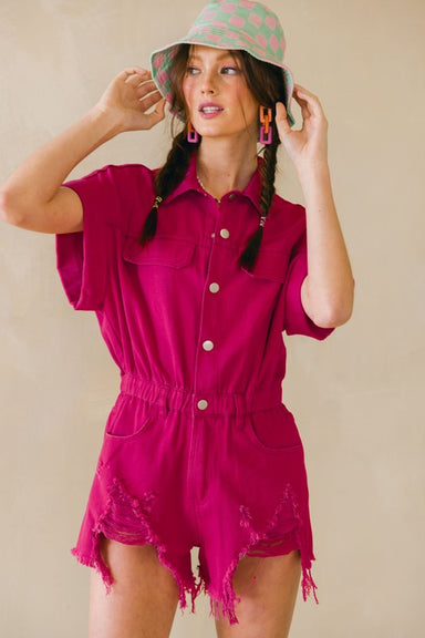 The Kellie Romper features a short puff sleeve and a popcorn smocked bodice with ruffle details, creating a cute and stylish look. The smocked bodi...
